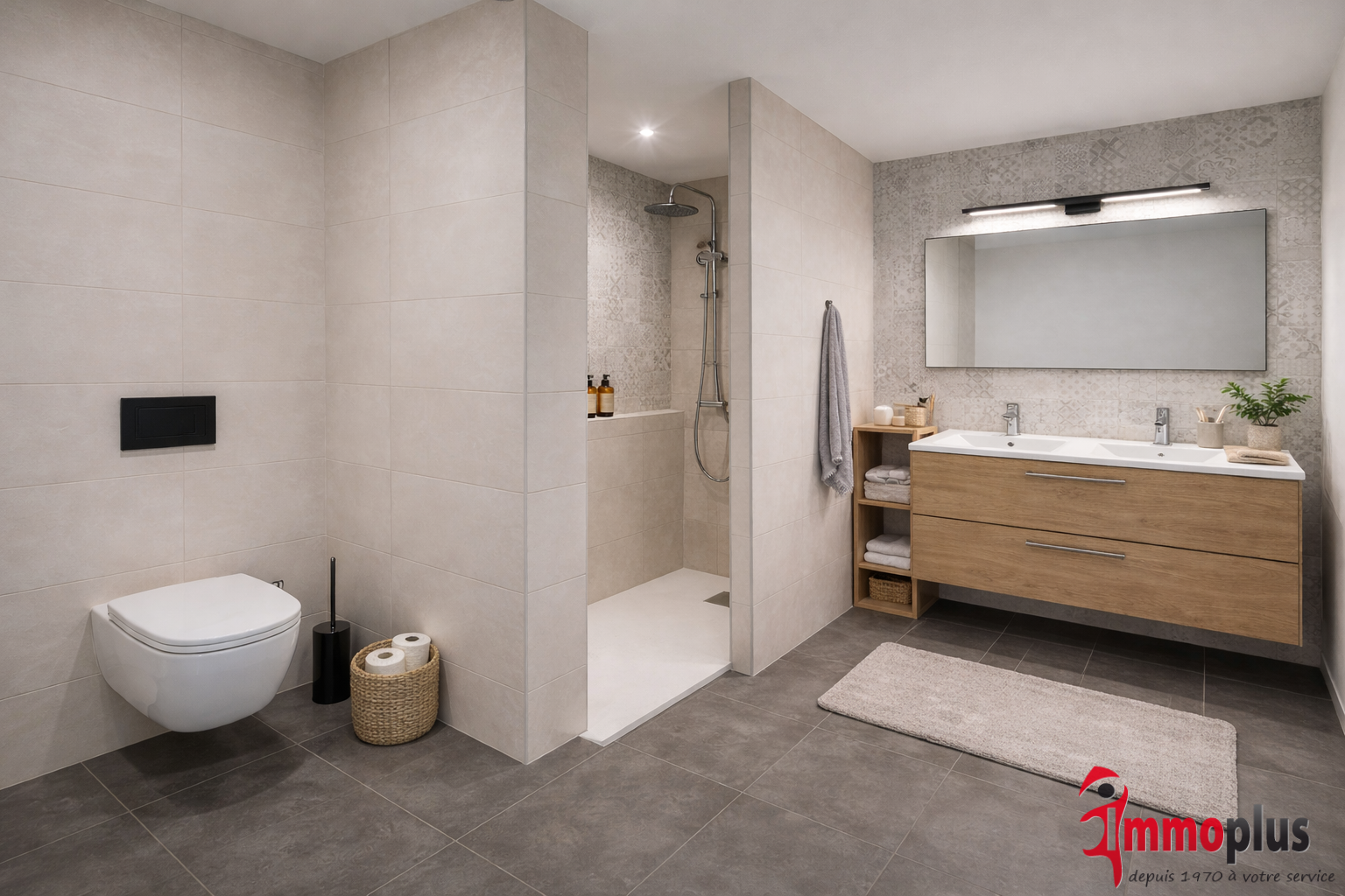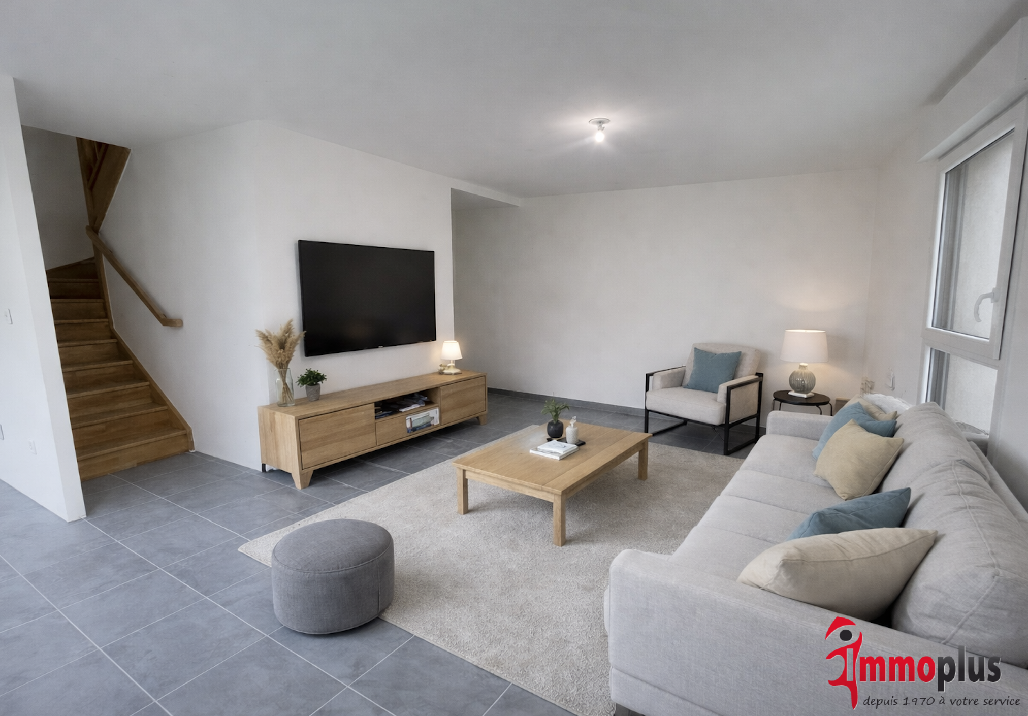 Le rez-de-chaussée se compose d’une entrée, d’un vaste séjour lumineux avec cuisine ouverte qui comprendra four, plaque de cuisson et hotte, le tout donnant accès à une grande terrasse de 11 m² et à son jardin de 80 m² (exposition ouest), clos et engazonné, ainsi qu’un WC indépendant avec espace buanderie.
