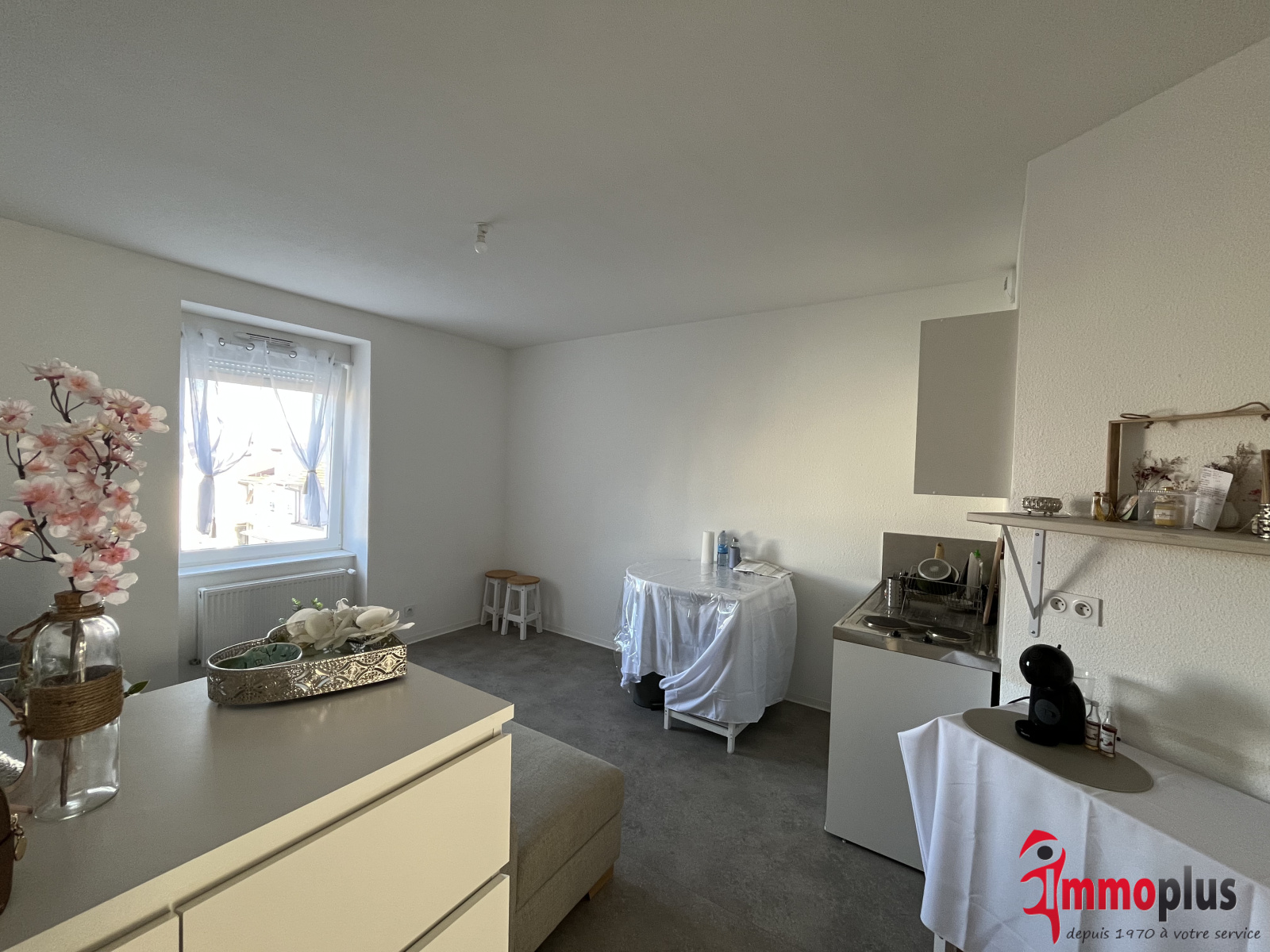 Comprenant une entrée, un beau salon/séjour avec kitchenette ouverte, 1 chambre, une salle de bain avec wc.