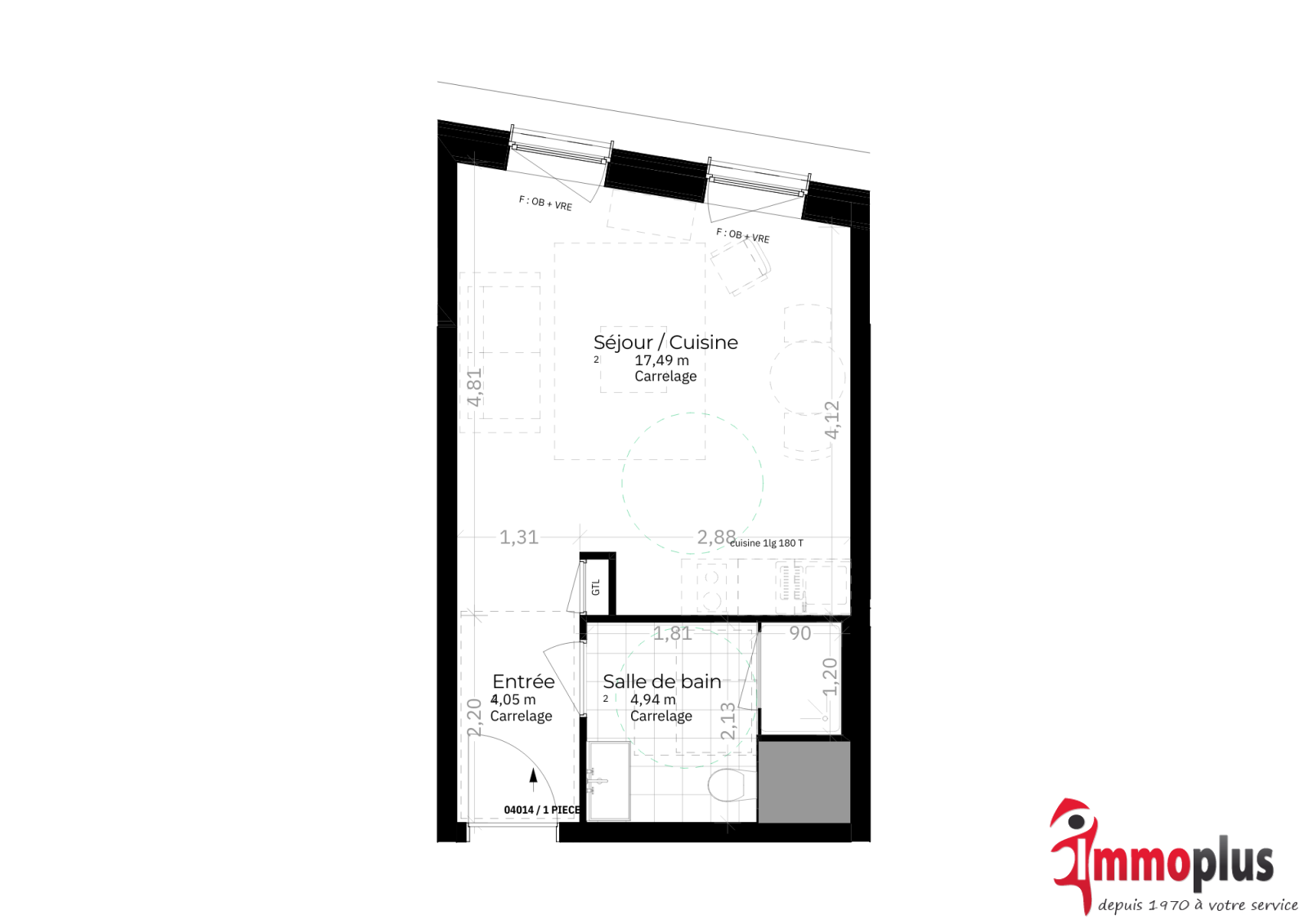 Le studio comprend une entrée, une pièce de vie et une salle d'eau avec wc.