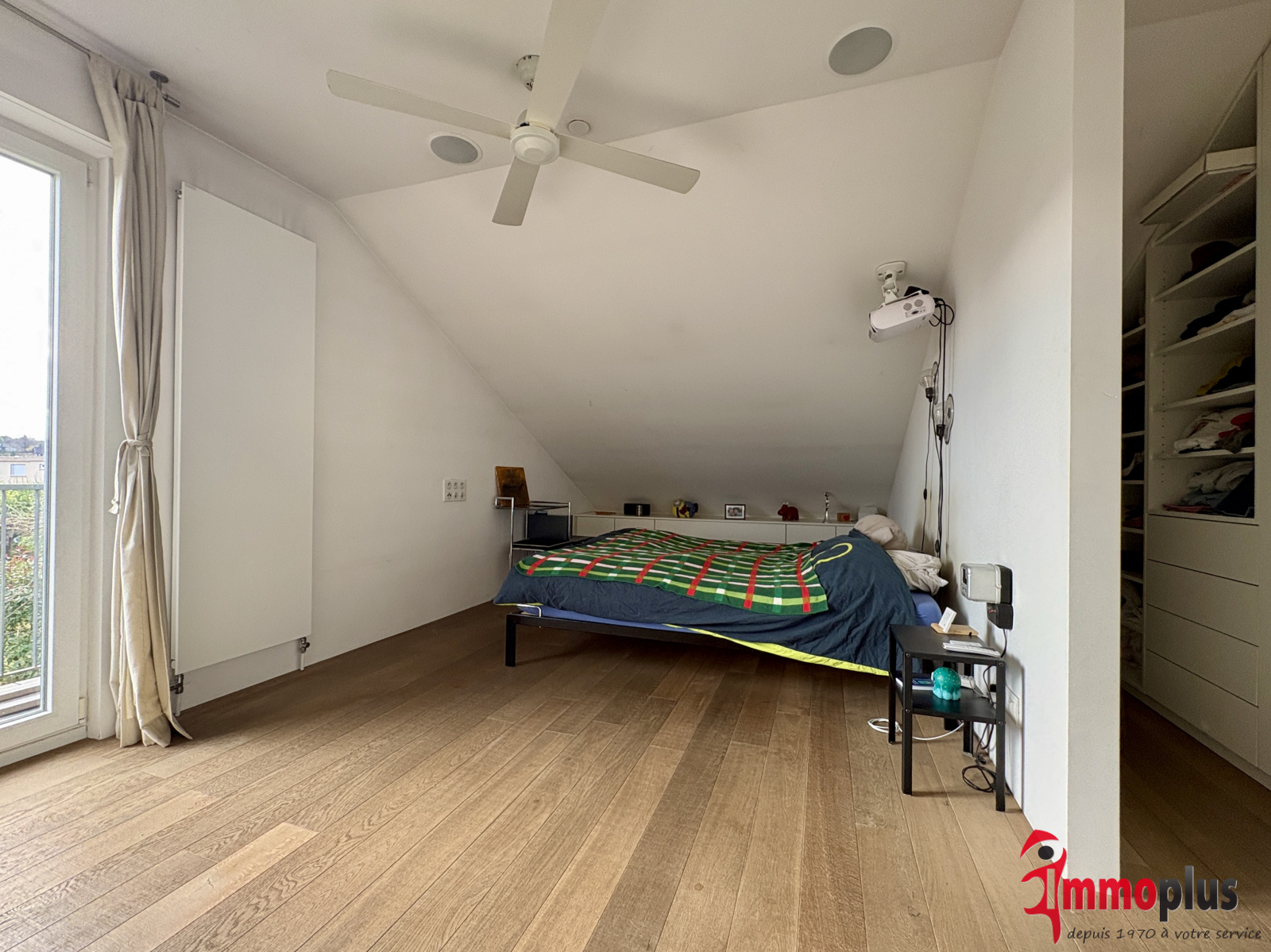 Un magnifique escalier en fer forgé, véritable élément décoratif, vous conduit à l’étage où une vaste mezzanine lumineuse distribue les espaces nuit. Vous y découvrirez une chambre avec dressing, une seconde chambre idéale pour un enfant, des invités ou un grand bureau, ainsi qu’une salle de bain équipée d’une baignoire.