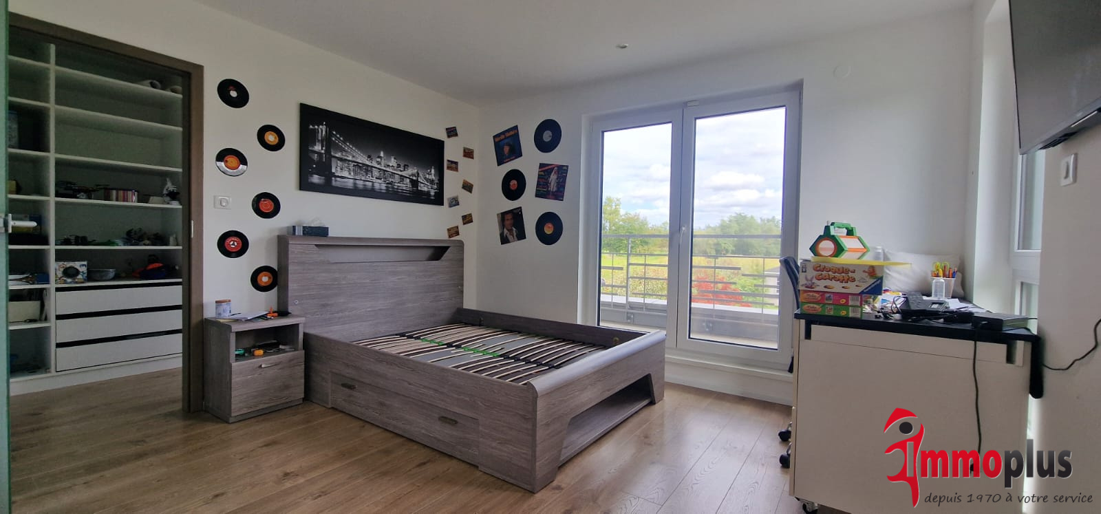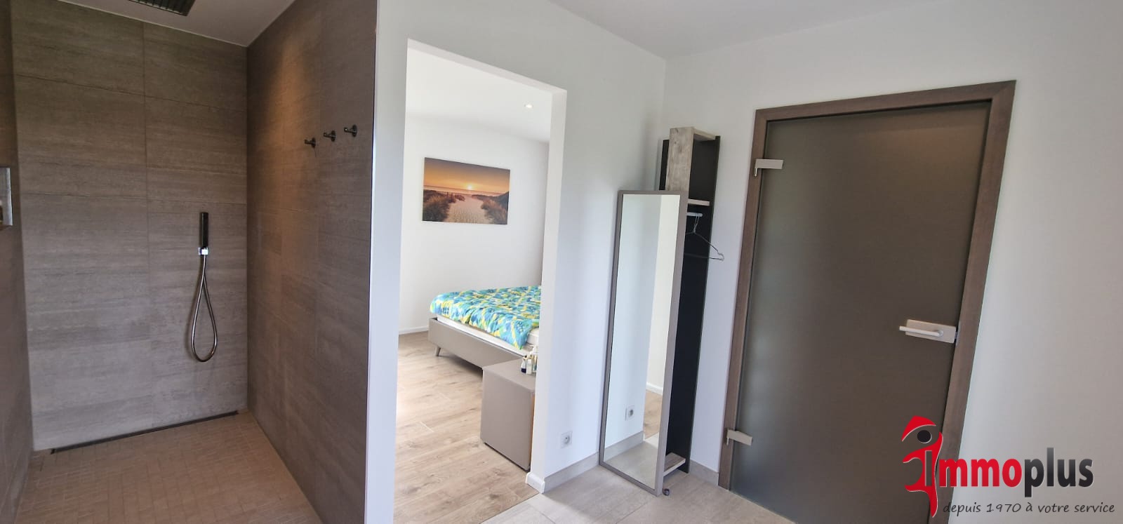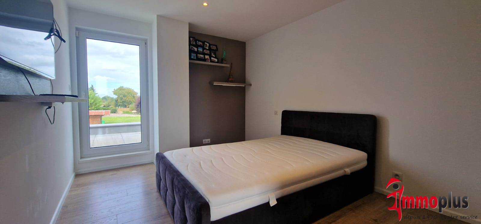 1 chambre avec placard mural intégré avec accès grande terrasse,