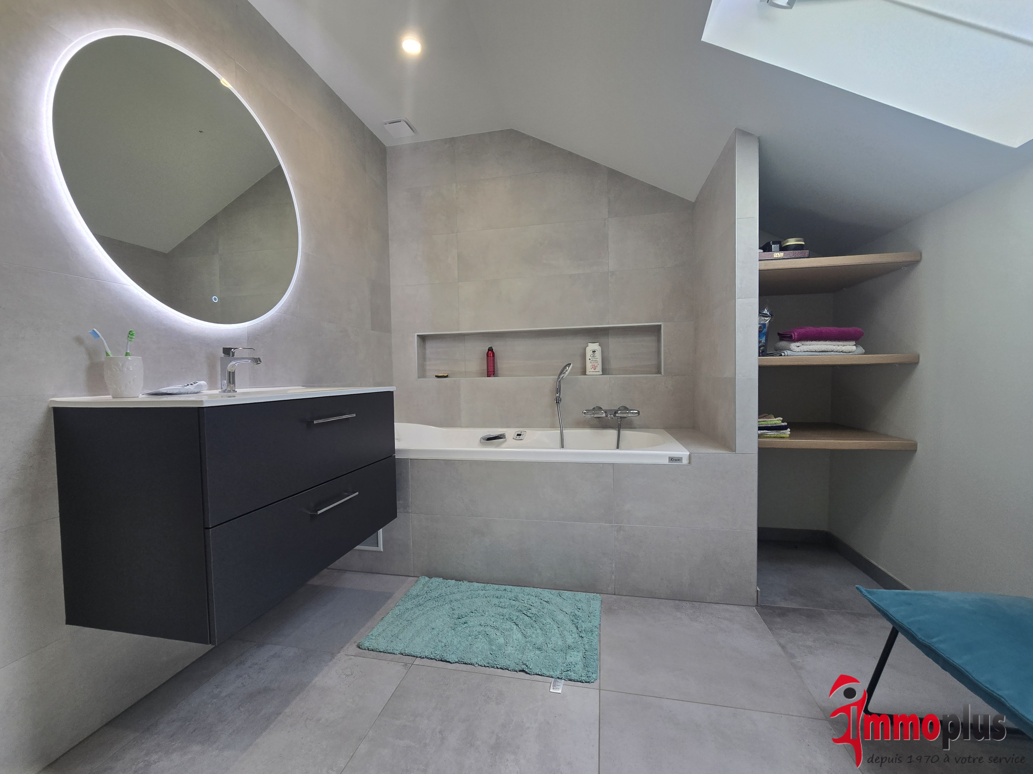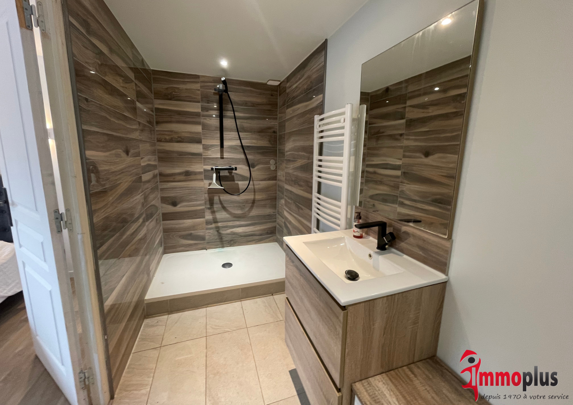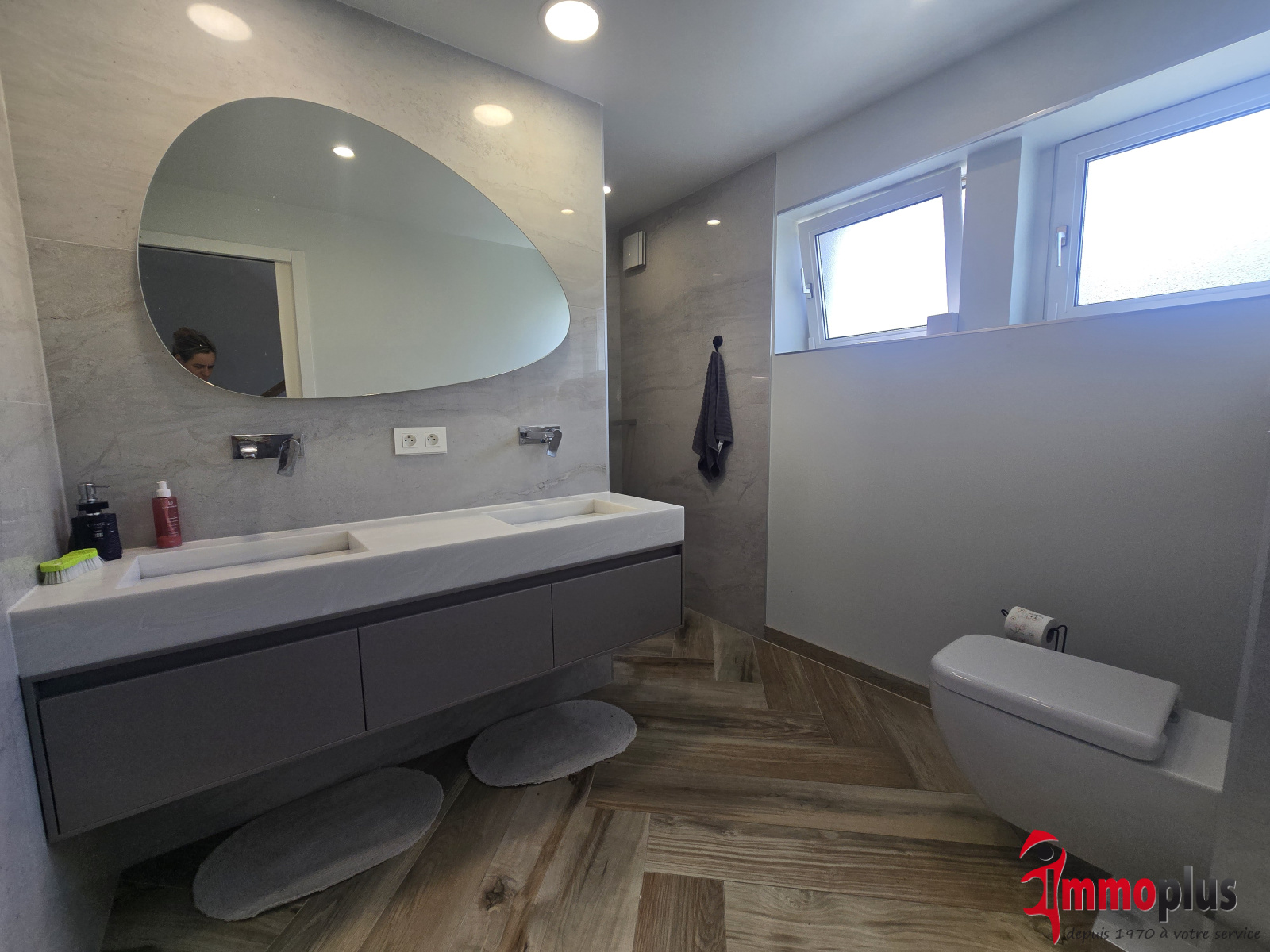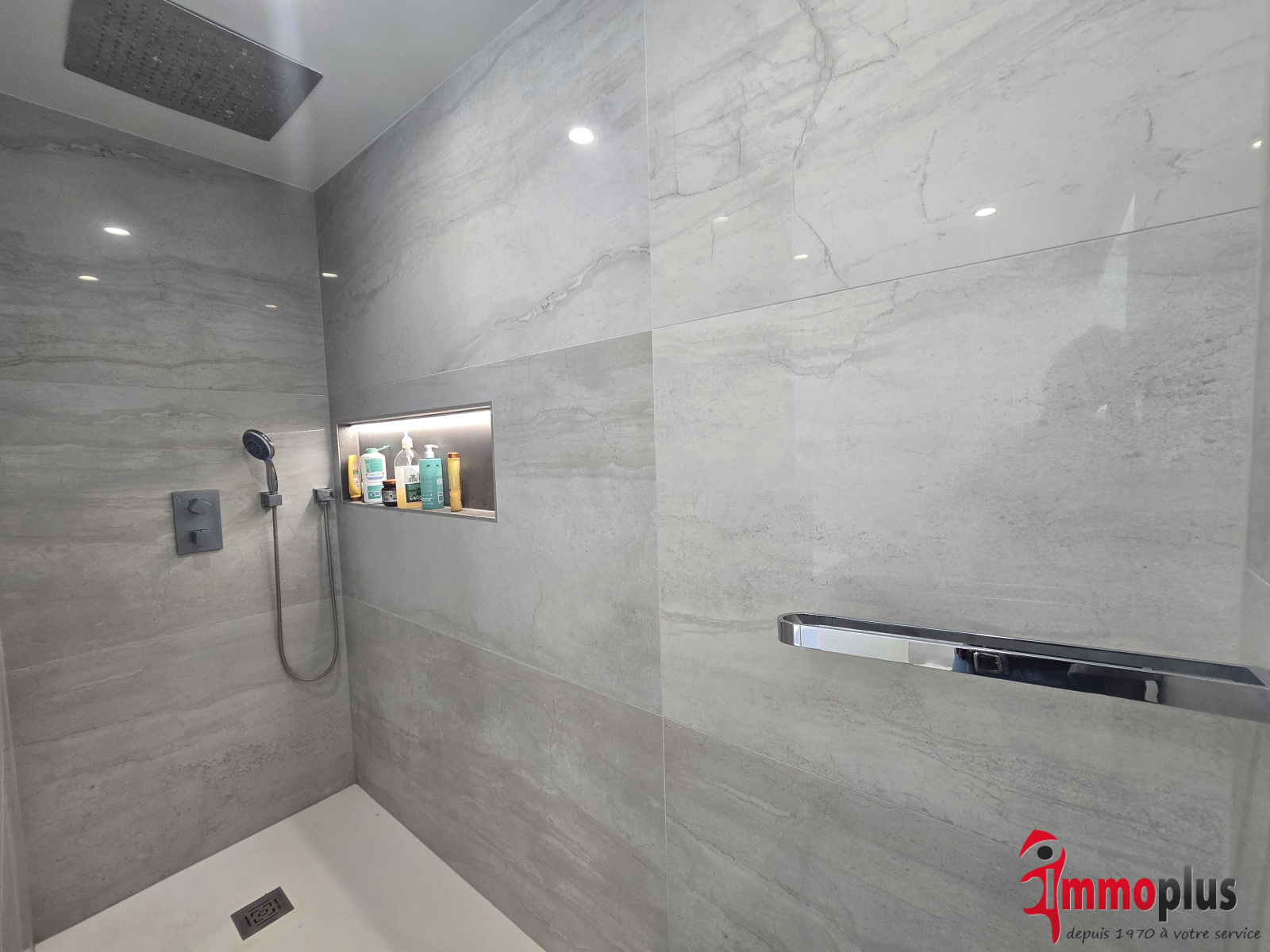 1 salle d'eau avec douche à l'italienne, double vasque et WC