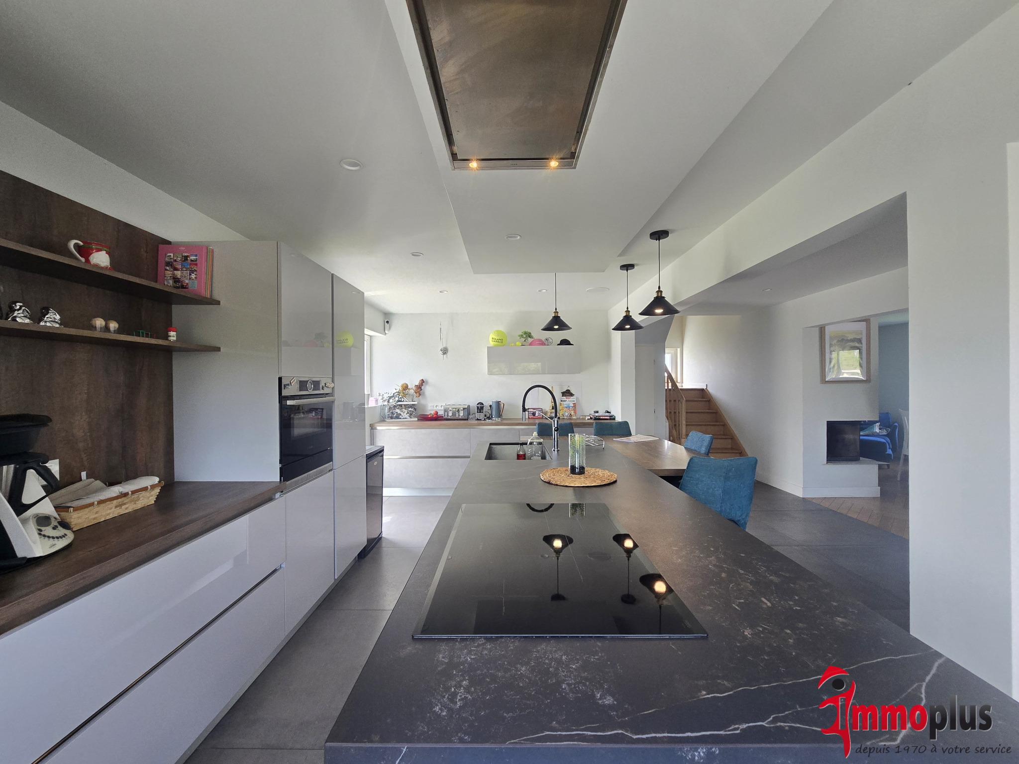 1 salon séjour attenant à une grande cuisine américaine entièrement équipée avec îlot central, avec accès terrasse et piscine,