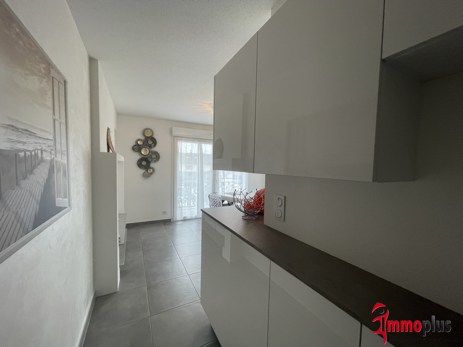 Il comprend une entrée avec un placard intégré, une pièce à vivre avec une cuisine ouverte entièrement équipée, une chambre avec un placard intégré, ainsi qu'une salle d'eau avec baignoire et WC.