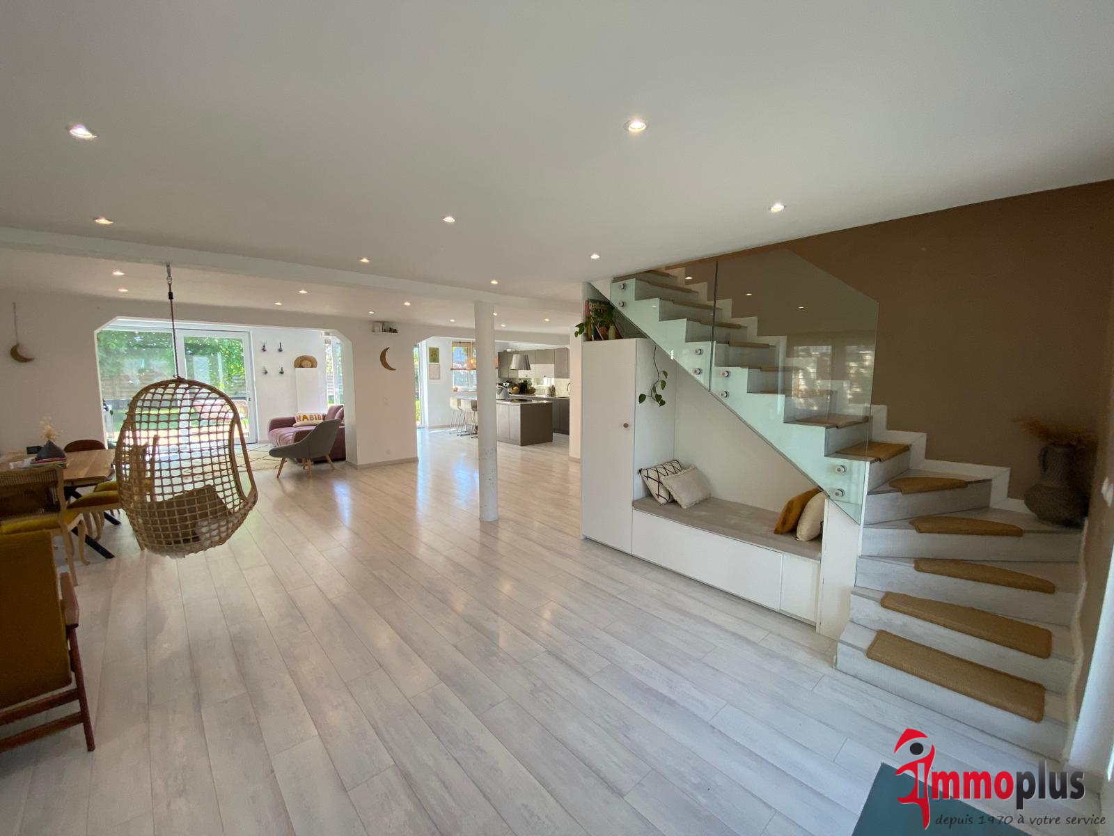 Comprenant au RDC sur 120 m² en Plain-pied, entrée, superbe pièce de vie lumineuse de 80 m² avec une magnifique cuisine complètement équipée et aménagée muni d'un îlot central s'ouvrant sur un spacieux séjour/salle à manger et pièce de jeu ! L'ensemble donne accès à la terrasse de 40 m² et à un jardin arboré et engazonné ! une chambre à coucher, salle de bain avec douche à l'italienne/vasque et toilette, une buanderie, grande pièce de sport ou cinema de + de 20 m², accès direct à un garage attenant pour 2 voitures/motos/vélos/atelier !