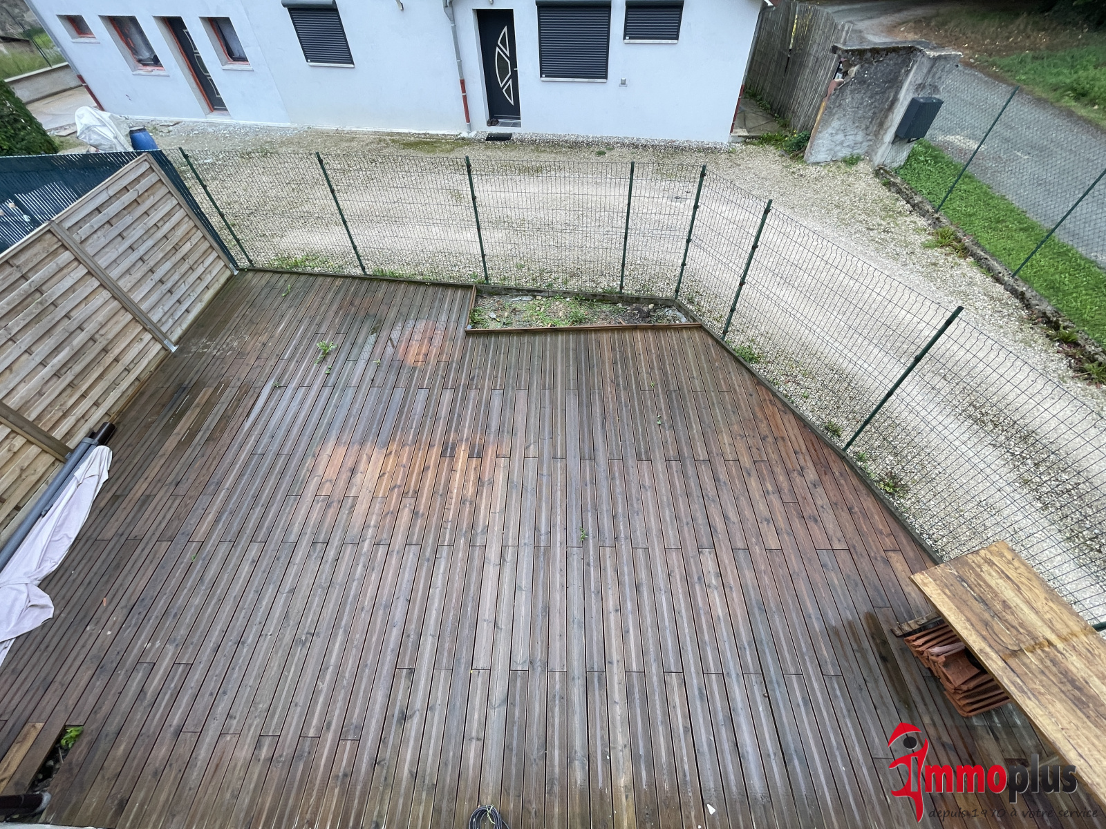 Une grande terrasse en bois (avec possibilité de retirer une partie pour créer un espace engazonné),