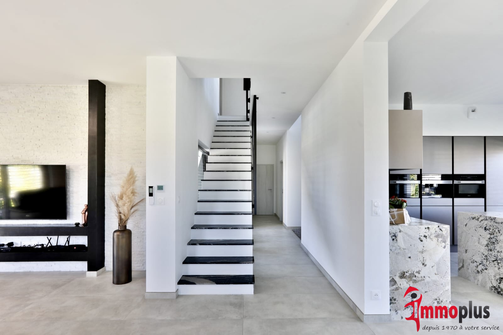 Systeme pompe a chaleur, chauffage au sol sur les 2 niveaux, climatisation dans toutes les pièces, adoucisseur, fenetres triple vitrages avec volets motorisé, pergola, arrosage automatique, pîscine chauffée.