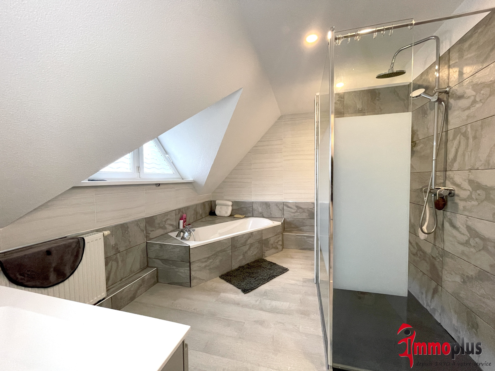- Salle de bains complète avec douche, baignoire et WC